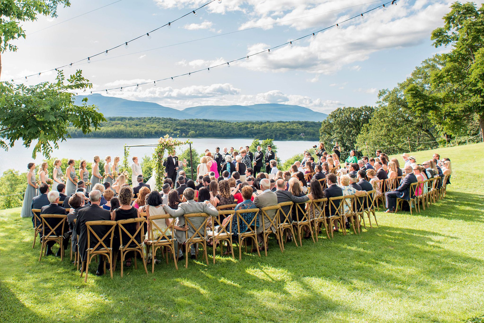 Planning: The Union Studio | Venue: Southwood Estate | Flowers: Bourgeon | Hair and makeup: Beautini | Invitation and Illustration: Escort table cards, menu wax seal, invitation calligraphy: Winter Craft Co. | Specialty cocktail sign: Shyama Golden | Catering and Cake: Main Course | Tent and rentals: Event Unlimited Party Rentals and Party Rental Limited | DJ: Love Junkies NYC, Jon | Officiant: Rabbi Claire Green | Videographer: We Cinema Films | Fireworks: Young Explosive
